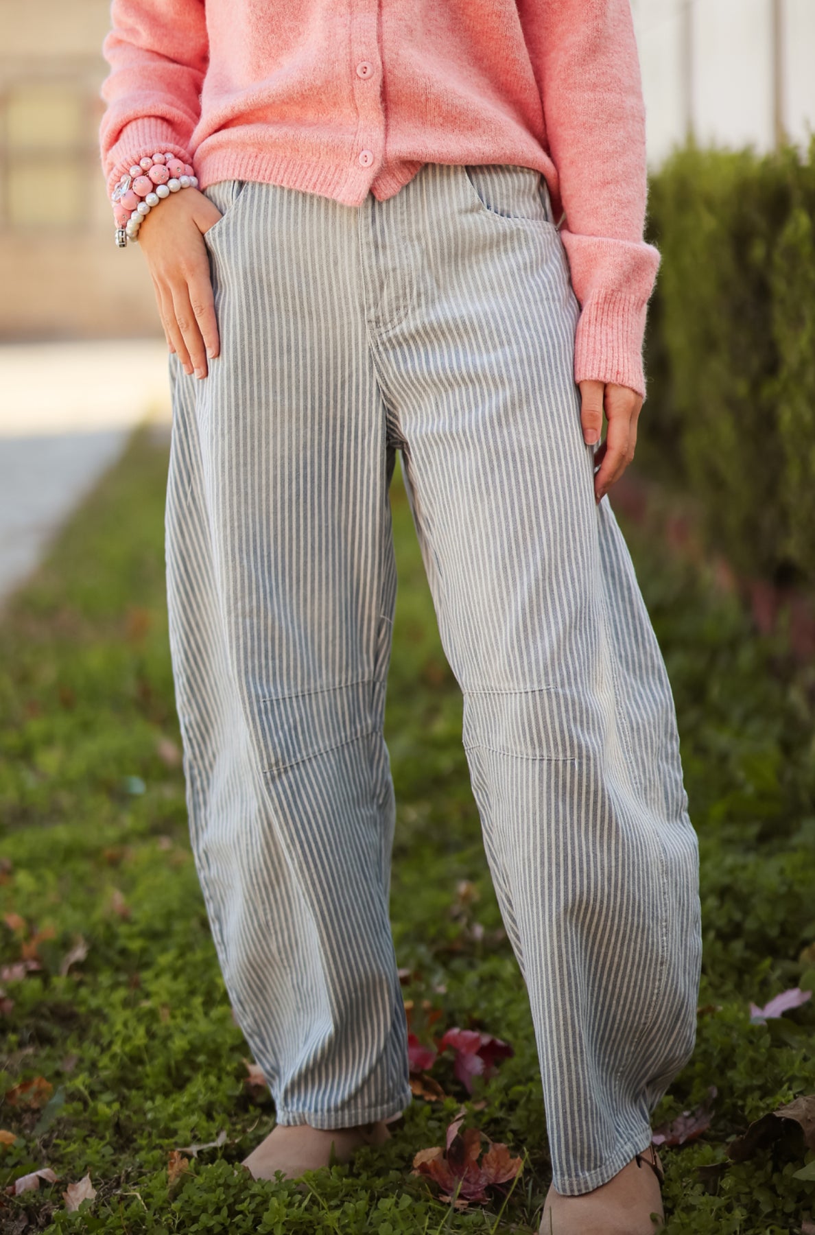 Pinstriped Barrel Jeans