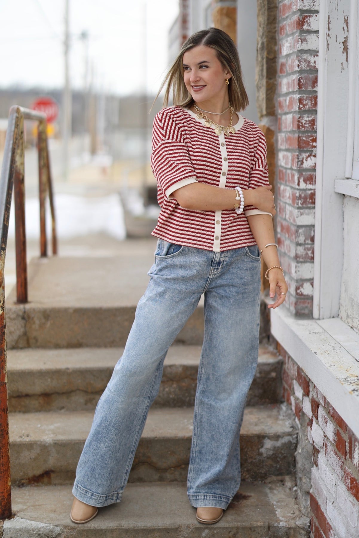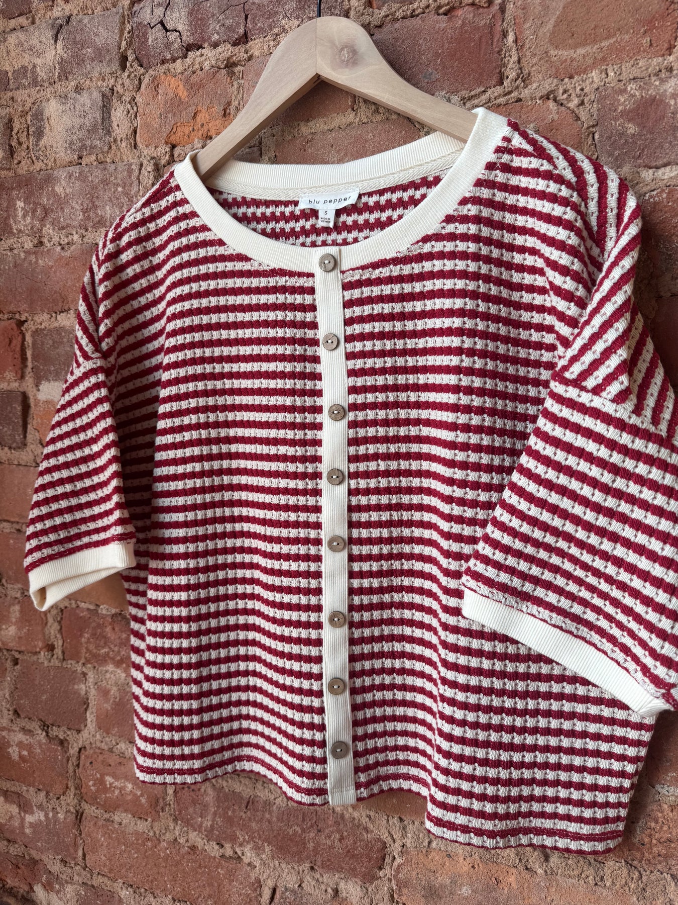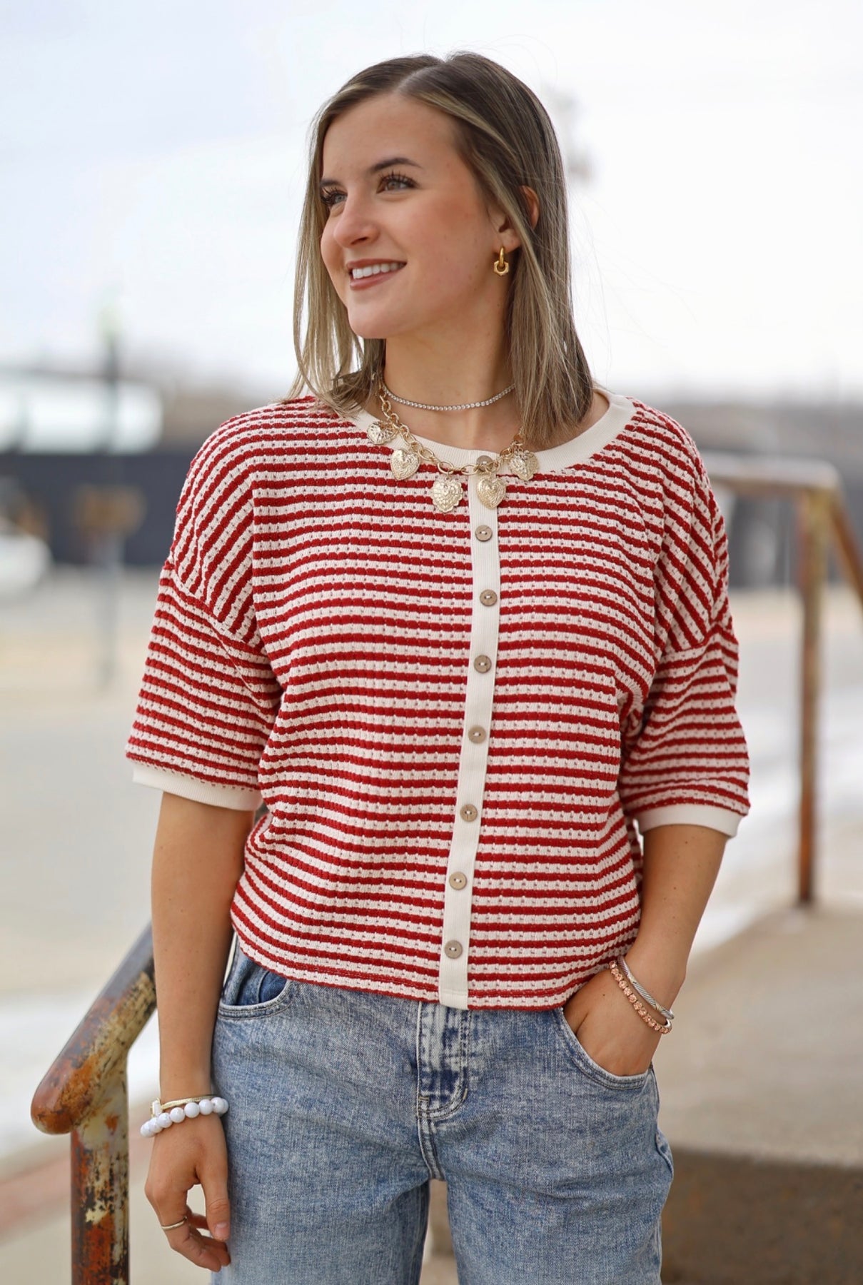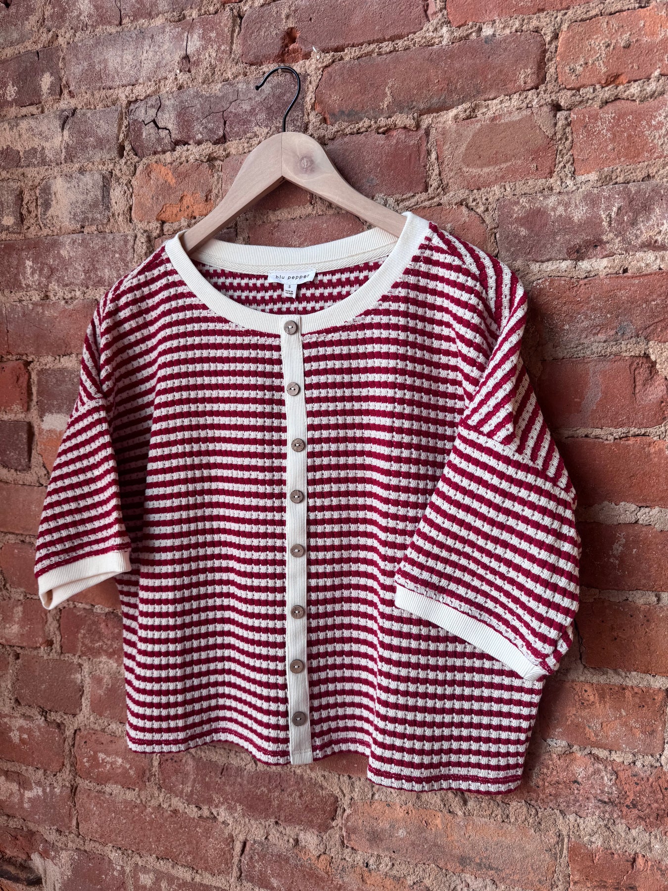 Red Stripe Button Down Thermal Top