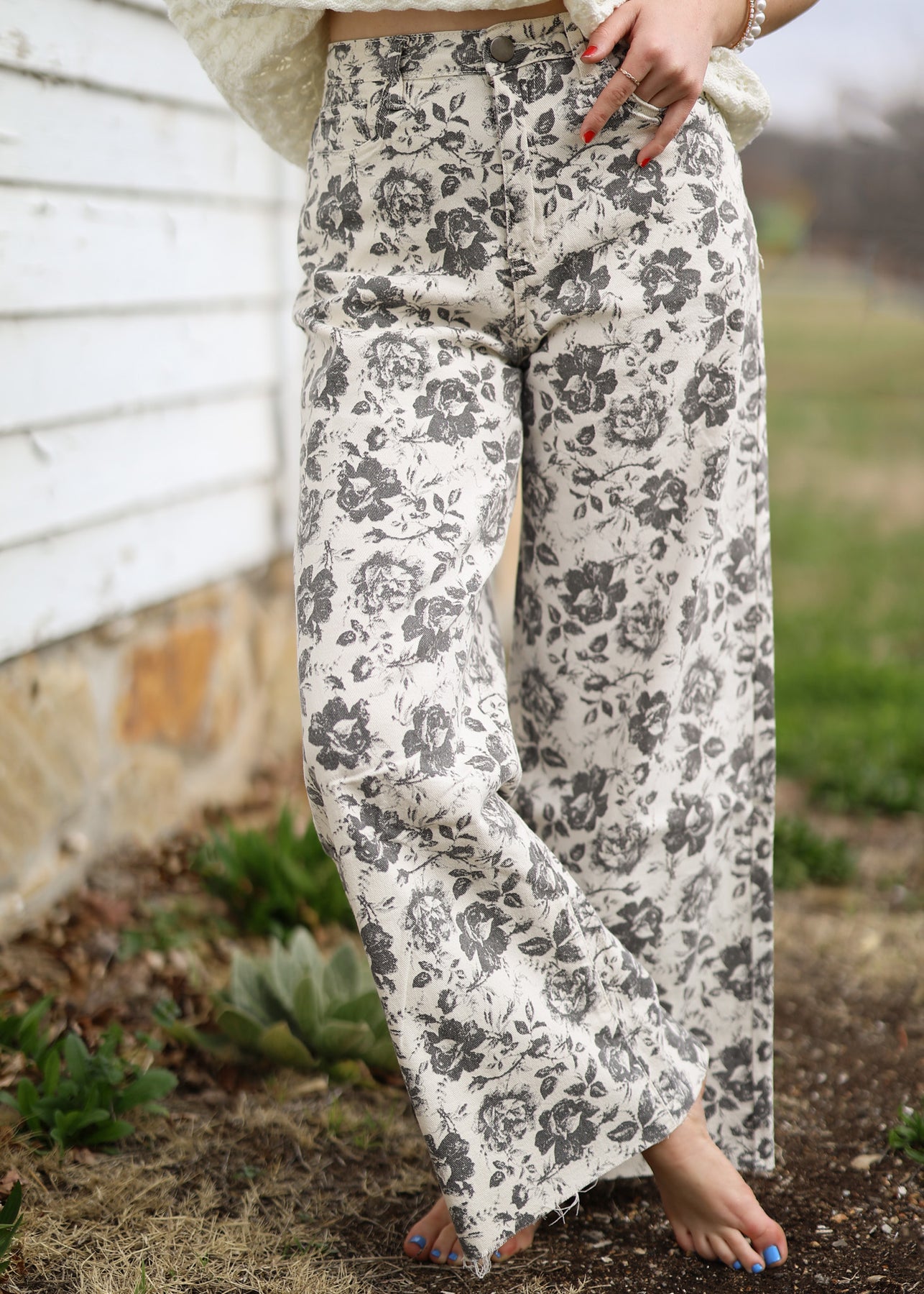 Cropped Floral Denim
