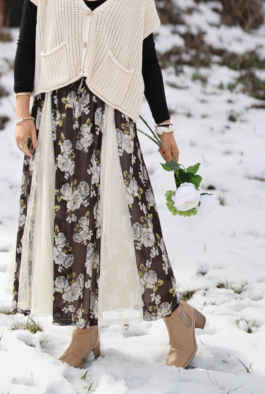 Floral Mesh Lace Maxi Skirt