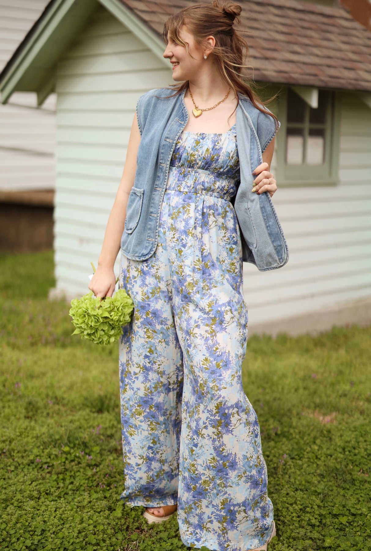 Say hello to your new favorite one-piece wonder. This blue floral long romper blends effortless style with feminine charm. Featuring a gathered bust, adjustable tank straps with back buttons, and a cute tie-back detail, it’s made to fit just right. The lightweight rayon-linen blend keeps it breezy, while the lining and elastic waist add comfort and confidence all day long.
