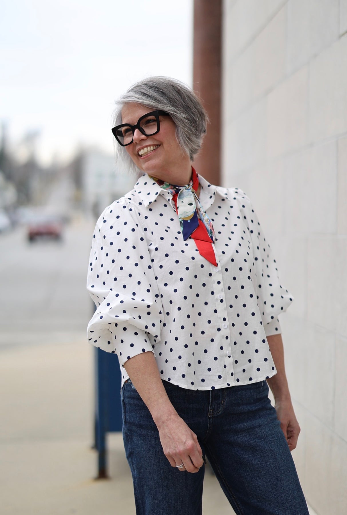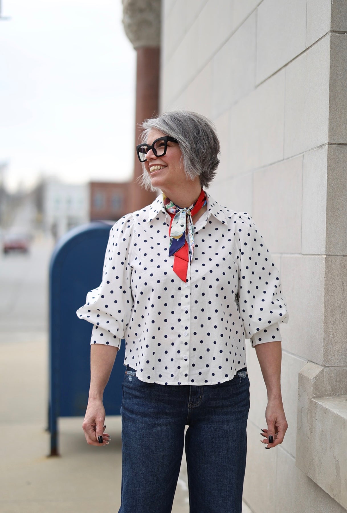 Classic with a playful twist 🤍 This white polka dot blouse brings timeless charm with a touch of personality. Crafted from 100% cotton, it’s breathable, comfortable, and perfect for all-day wear. The crisp collar and button-front design keep it polished, while the soft puff sleeves and statement cuffs add a feminine, vintage-inspired feel.